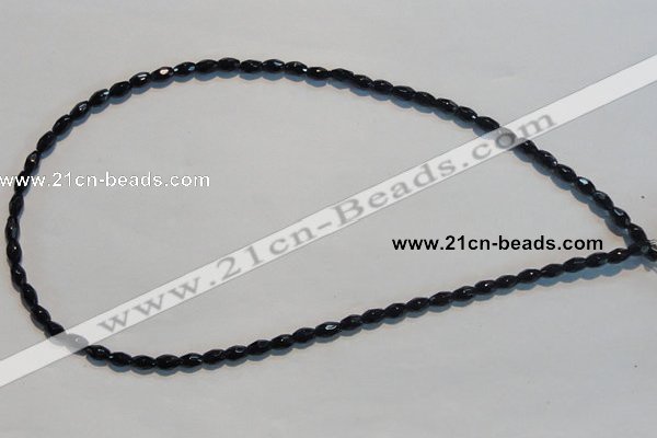 Details: 15.5 inches strand of 4*6mm faceted rice black agate gemstone beads wholesale Item: CAB789 Material: black agate Shape: faceted rice Color: See image Size (mm): approx 4*6mm Length (inch): approx 15.5" per strand Quantity: approx 67 beads per strand Quantity Discount Pricing: 1 – 4: None 5 – 49: 95% 50 – 99: 90% 100+: 85% The listed price is for one strand beads |