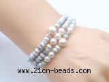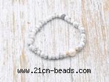Details: Fashion gemstone & pearl bracelet: 4*6mm faceted rondelle white howlite & 10-11mm potato white freshwater pearl stretchy bracelet jewelry Item: CFB700 Material: 4*6mm faceted rondelle white howlite 10-11mm potato white freshwater pearls 1.5*4mm copper spacers (you can choose different spacer & style) Color: See image Length (inch): Approx 7.5 inch (Default) You can choose 6.5”; 7”; 8”; 8.5”; 9” or 9.5”
