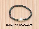 Details: Fashion gemstone & pearl bracelet: 4mm faceted round tiny Indian bloodstone & 10 - 11mm potato white freshwater pearl beaded bracelet Item: CFB837 Material: 4mm faceted round Indian bloodstone 10-11mm potato white freshwater pearls 1.5*4mm copper spacers 7*12m copper lobster clasp(Style #2) (you can choose different spacer & clasp, if you like sterling silver clasp, other clasp or better quality potato white freshwater pearls we don't show, please contact us before you placing order) Color: See image Style: No.1: Stretchy bracelet (Default) No.2: Adjustable bracelet Length (inch): Approx 6 inch You can choose 6.5”; 7”; 7.5”; 8”; 8.5” or 9” Quantity Discount Pricing: 1 - 4: None 5 - 49: 95% 50 - 99: 90% 100+: 85%
