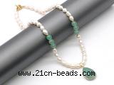 Details: Fashion pearl necklace: 7mm - 8mm baroque white freshwater pearls & green aventurine beaded necklace with green aventurine pendant, finished with copper spring ring shape clasp Item: CFN156 Material: 7-8mm baroque white freshwater pearls 8mm round green aventurine Rose quartz pendant 1.5*4mm copper spacers Copper spring ring clasp(#7) (you can choose different spacer, pendant & clasp, if you like sterling silver clasp or other clasp we don't show, please contact us before you placing order) Color/Number See image Style: No.1: Non-knotted (Default) No.2: Hand-knotted Length (inch): Approx 16 inch (Default, include the clasp) You can choose 17”; 18”; 19”; 20”; 22” or 24”