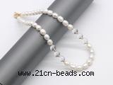 CFN431 9 - 10mm rice white freshwater pearl & white crystal necklace