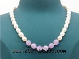 Details: Fashion pearl necklace: 9mm - 10mm rice white freshwater pearls & lavender amethyst beaded necklace finished with copper spring ring clasp Item: CFN401 Material: 9-10mm rice white freshwater pearls 10mm round lavender amethyst beads 1.5*4mm copper spacers (No.2) 11mm copper spring ring clasp (you can choose different spacer & clasp, if you like sterling silver clasp, other clasp or better quality rice white freshwater pearls we don't show, please contact us before you placing order) Color: See image Style: No.1: Non-knotted (Default) No.2: Hand-knotted Length (inch): Approx 16 inch (16-17”, Default) You can choose 17”(17-18”); 18”(18-19”); 19”(19-20”); 20”(20-21”); 22”(22-23”) or 24”(24-25”)