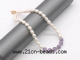 CFN706 9mm - 10mm potato white freshwater pearl & lavender amethyst necklace