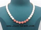 Details: Fashion pearl necklace: 16 - 24 inches 9mm - 10mm rice white freshwater pearls & 10mm round cherry quartz beaded necklace finished with copper spring ring clasp Item: CFN434 Material: 9-10mm rice white freshwater pearls 10mm round cherry quartz beads 1.5*4mm copper spacers (No.2) 11mm copper spring ring clasp (you can choose different spacer & clasp, if you like sterling silver clasp, other clasp or better quality rice white freshwater pearls we don't show, please contact us before you placing order) Color: See image Style: No.1: Non-knotted (Default) No.2: Hand-knotted Length (inch): Approx 16 inch (16-17”, Default) You can choose 17”(17-18”); 18”(18-19”); 19”(19-20”); 20”(20-21”); 22”(22-23”) or 24”(24-25”)