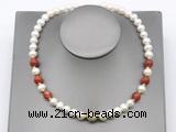 Details: Fashion pearl necklace: 16 - 24 inches 9mm - 10mm potato white freshwater pearls, red banded agate & 12mm zircon ball beaded necklace finished with copper spring ring clasp Item: CFN731 Material: 9-10mm potato white freshwater pearls 10mm/12mm round red banded agate beads 12mm zircon ball (No.2) 2*5mm copper spacers (No.4) 11mm copper spring ring clasp (you can choose different spacer, zircon ball & clasp, if you like sterling silver clasp, other clasp or better quality potato white freshwater pearls we don't show, please contact us before you placing order) Color: See image Style: No.1: Non-knotted (Default) No.2: Hand-knotted Length (inch): Approx 16 inch (16-17”, Default) You can choose 17”(17-18”); 18”(18-19”); 19”(19-20”); 20”(20-21”); 22”(22-23”) or 24”(24-25”)