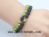 Details: Power bead bracelet: 8mm round black lava & green sea sediment jasper gemstone beaded meditation yoga bracelet wholesale Item: CGB7628 Material: black lava, green sea sediment jasper & hematite bead spacer (if you don’t need the spacer, please choose No) Color: See image Size (mm): 8mm Length (inch): approx 7.5 inches(Default) You can choose 6.5 inches; 7 inches; 8 inches or 8.5 inches Quantity Discount Pricing: 1 – 4: No 5 – 49: 95% 50 – 99: 90% 100+: 85% The listed price is for 1 piece bracelet
