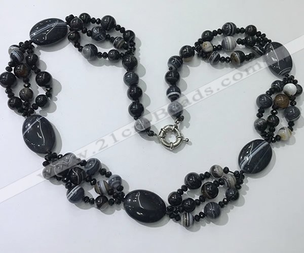 Details: Agate beaded necklace jewelry:8mm, 10mm round & 18*25mm oval black agate gemstone beads,3*4mm faceted rondelle chinese crystal beads,ended with brass spring ring clasp Item: CGN295 Material: agate & chinese crystal Shape: See image Color: See image Length (inch): approx 24” – 25” Quantity Discount Pricing: 1 – 4: None 5 – 49: 95% 50 – 99: 90% 100+: 85% The listed price is for one necklace The color & size of the product may vary, we will send your orders randomly according to our stock. |