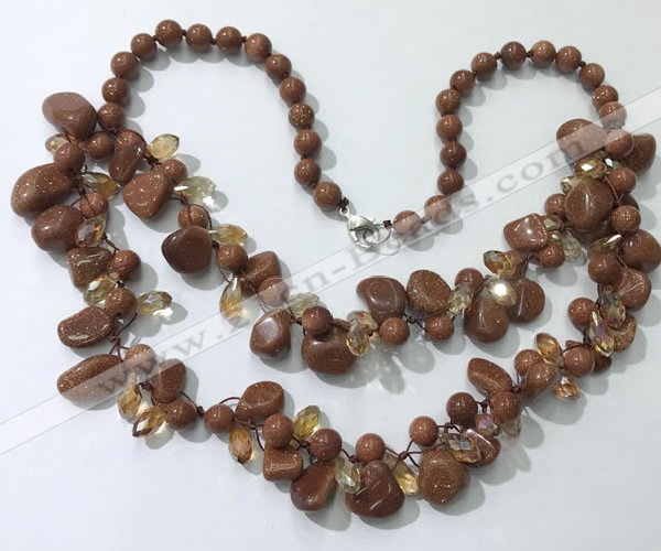 Details: Goldstone beaded necklace jewelry: 8mm round & 6*10mm - 10*15mm chips goldstone beads, 6*10mm faceted teardrop chinese crystal beads, ended with brass lobster clasp Item: CGN532 Material: goldstone & chinese crystal Shape: See image Color: See image Length (inch): approx 19.5” - 20” Quantity Discount Pricing: 1 - 4: None 5 - 49: 95% 50 - 99: 90% 100+: 85% The listed price is for one necklace The color & size of the product may vary, we will send your orders randomly according to our stock. |