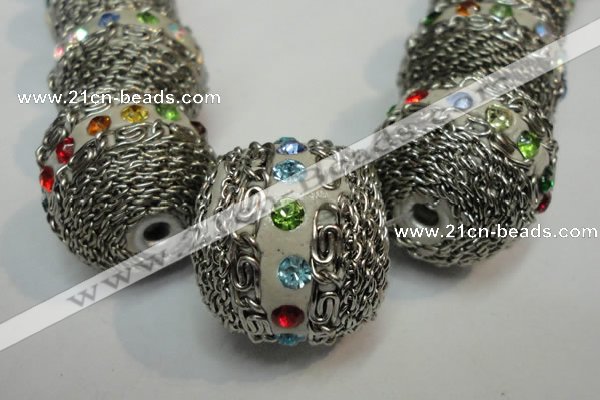 Details: Indonesia Jewelry Beads – 25mm round Indonesia beads with shining rhinestone & brass double core for fashion bracelet or necklace jewelry etc. Item: CIB460 Shape: round Color: See image Size (mm): approx 25mm (Hole:3mm) Quantity Discount Pricing: 1 – 4: None 5 – 49: 95% 50 – 99: 90% 100+: 85% The listed price is for one loose Indonesia beads The color & size of the product may vary, we will send your orders randomly according to our stock. |