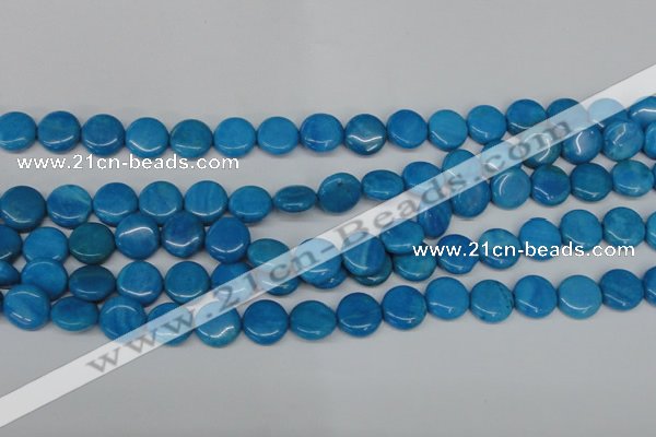 15.5 inches strand of 12mm flat round dyed larimar gemstone beads wholesale