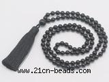 Details: Hand-knotted onyx mala necklaces: 6mm round black onyx gemstone beads with 1 10mm guru bead and satin tassel (you can choose different colors) Item: GMN283 Material: Black onyx & Satin tassel Color: See image Length (inch): Necklace length: approx 28 - 31 inches(Not including guru bead & tassel) Tassel Lenght: 7cm Quantity Discount Pricing: 1 – 4: None 5 – 49: 95% 50 – 99: 90% 100+: 85% The listed price is for 1 piece mala necklace Each necklaces is handmade and hand-knotted with different gemstones. Please be aware that each necklace varies in stone pattern and color - Making it a truly one-of-a-kind, unique piece of jewelry.