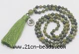 Details: Hand-knotted unakite mala necklaces: 6mm round unakite gemstone beads with 1 10mm guru bead and satin tassel & charm (you can choose different tassels & charms) Item: GMN303 Material: Unakite, satin tassel & charm Color: See image Length (inch): Necklace length: approx 28 - 31 inches(Not including guru bead & tassel) Tassel Lenght: 7cm Quantity Discount Pricing: 1 – 4: None 5 – 49: 95% 50 – 99: 90% 100+: 85% The listed price is for 1 piece mala necklace Each necklaces is handmade and hand-knotted with different gemstones. Please be aware that each necklace varies in stone pattern and color - Making it a truly one-of-a-kind, unique piece of jewelry.