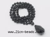Details: Hand-knotted agate mala necklaces: 108 8mm/10mm round black agate beads with agate pendant/12mm guru bead and agate pendant (you can choose different pendants, but there will be tiny different in shape & color, we will make the jewelry randomly according to our stock) Item: GMN4915 Material: No.1: 8mm: 108 8mm black agate beads & agate pendant 10mm: 108 10mm black agate beads & agate pendant No.2: 8mm: 108 8mm black agate beads, 12mm guru bead & agate pendant 10mm: 108 10mm black agate beads, 12mm guru bead & agate pendant Color: See image Length (inch): Necklace length: 8mm: approx 37 - 40 inches (Not including guru bead & pendant) 10mm: approx 46 - 50 inches (Not including guru bead & pendant) Pendants: approx 18*35mm - 28*40mm Quantity Discount Pricing: 1 - 4: None 5 - 49: 95% 50 - 99: 90% 100+: 85% This mala is available in both 8mm and 10mm beads, The listed price is for 1 piece 8mm mala necklace