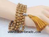 Details: Hand-knotted jasper mala necklaces: 108 8mm/10mm round wooden jasper beads with 1 10*17mm alloy guru bead and satin tassel (you can choose different colors) Item: GMN606 Material: No.1: 108 8mm wooden jasper beads, alloy guru bead & satin tassel No.2: 108 10mm wooden jasper beads, alloy guru bead & satin tassel Color: See image Length (inch): Necklace length: No.1(8mm: approx 38 - 41 inches (Not including guru bead & tassel) No.2(10mm: approx 47 - 50 inches (Not including guru bead & tassel) Tassel Lenght: 7cm Quantity Discount Pricing: 1 – 4: None 5 – 49: 95% 50 – 99: 90% 100+: 85% This mala is available in both 8mm and 10mm beads, The listed price is for 1 piece 8mm mala necklace
