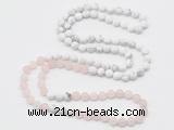Details: Hand-knotted white howlite mala necklaces: 108 8mm/10mm round matte rose quartz & matte white howlite gemstone beaded necklaces Item: GMN6403 Material: No.1(8mm: matte rose quartz & matte white howlite beads No.2(10mm: matte rose quartz & matte white howlite beads Color: See image Length (inch): Necklace length: 8mm: approx 37 - 40 inches 10mm: approx 46 - 50 inches Quantity Discount Pricing: 1 – 4: None 5 – 49: 95% 50 – 99: 90% 100+: 85% This mala is available in both 8mm and 10mm beads, The listed price is for 1 piece 8mm mala necklace