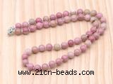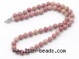 Details: Non-knotted/Hand-knotted gemstone necklaces: 8mm/10mm round pink wooden jasper gemstone beaded necklace finished with 8mm brass spring ring clasps (you can choose different size, style & clasp)