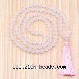 Material: Style No.1: 8mm/10mm matte rose quartz Style No.2: 8mm/10mm matte rose quartz, 12mm matte rose quartz guru bead & silk tassel Style No.3: 8mm/10mm matte rose quartz, 12mm matte rose quartz guru bead & 8mm/10mm matte rose quartz beaded tassel