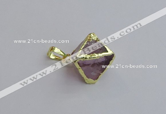 Gemstone pendant jewelry: 20*22mm amethyst gemstone with brass setting pendants wholesale